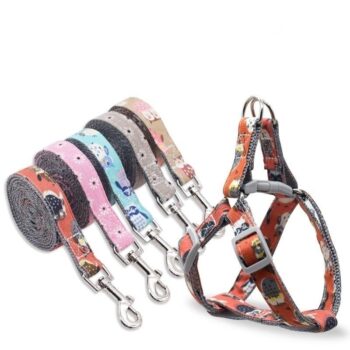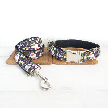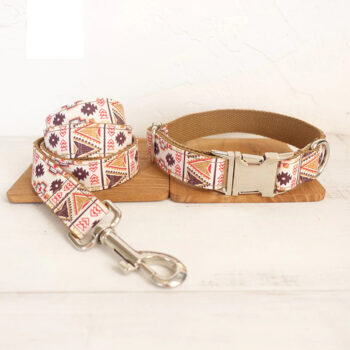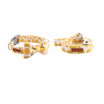 White Polka Dot Cotton Dog Collar and Leash Set with Bowtie