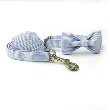 Blue Striped Dog or Cat Collar Set with Bowtie and Leash